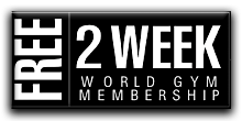 Sign Up For A World Gym Membership and Receive 2 Weeks FREE! for every 6 months membership or 5 Weeks FREE! for 1 year membership (Paid in full) $ 399. Only At World Gym East, Fort Lauderdale. HURRY! OFFER ENDS SOON! Click Here For Flyer
