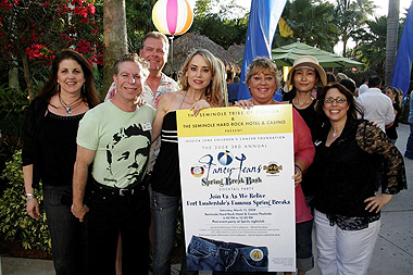 The Third Annual Fancy Jeans Spring Break Bash raised over $137,000 for local children in need fighting cancer. On Saturday, March 15, 2008, the Jessica June Children’s Cancer Foundation hosted the event which was sponsored by the Seminole Tribe of Florida and the Seminole Hard Rock Hotel & Casino. The reception, themed “reliving Fort Lauderdale’s famous Spring Breaks”, had over 360 guests in attendance, and took place at the poolside of the Seminole Hard Rock Hotel & Casino. Guests had a good time dancing to the music of The Edge while being entertained by professional dancers wearing swimsuits from various decades, and acrobatic performers, including a “yellow haired girl” on stilts. Attendees had the opportunity to bid on more than 100 silent auction items. During the event, Jessica Cotto offered her personal and emotional testimony on stage describing how the Jessica June Children’s Cancer Foundation made a difference in her life during times of crisis while her son was fighting cancer. Alejandra Posada, a five year old previously assisted by the Foundation, drew the three winning raffle tickets. Plaques were awarded to Alexandra Nightingale and Mikaela Ballone for Youngest Most Outstanding Volunteers, to Larry Gettis for Most Outstanding Fundraising Volunteer and to Gregg Sjoquist for the Most Outstanding Volunteer of 2007. Sandra Muvdi, President and Founder, recognized all the events’ generous sponsors on stage including the top tier: Bloom, Gettis & Habib, P.A., Steve Savor, Perfumania, Scott McPherson, Innovative Benefits Consulting, Physicians Insurance Company, Sun-Sentinel, American Airlines, Premier Beverage, Stephens Distributing, Blue Martini and S.MARKGRAPHICS. At the conclusion of the evening, Ms. Muvdi was presented with a $25,000 donation by The Wasie Foundation which came as a surprise to all.