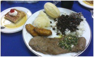 I hadn’t a clue as what to order; but you see the kitchen right in front of you, watching them cook everything to order. The ambiance wasn’t there but after looking over the menu (written in both Spanish and English), I decided to have their specialty – Palomilla Las Colinas, which was 8 ounces of Pulled Pork sautéed with Onions (yumm – and only $7.75). I was served a huge portion PLUS a huge order of Arroz Amarilla/Yellow Rice ($2.50) PLUS a pretty large order of Tostones/Green Plaintains ($2.50).The nicest waitress came immediately over trying to explain the menu’s to us. Oh, I forgot, we also were served a lovely salad before our entrée. How much more could you expect for the price? Paul also ordered the special and Roger ordered their Bistec de Pollo a la Plancha/Grilled Chicken Steak ($7.95) with his huge 2-sides also. Boy… I was really impressed that I marched right over to the owner (Juan and Rafael Tolentino) and other family members to let them know that I was choosing to review their homey but delightful, unassuming restaurant.