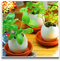Our most popular item these days is our Eggling's! These precious little Eggling look and feel like a real extra large egg. But wait...there's more! Crack its top and discover a garden ready for sowing! Extremely popular with future gardeners and children, these Eggling are made of white porous ceramic (2.125" height x 1.875" diameter) and comes with a terra cotta tray and seed pack of either herbs or flowers. Start your own herb or flower garden today!