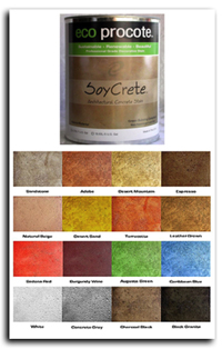 A professional grade, semi-transparent architectural penetrating concrete stain made from bio-based soy technology. An acid-free, non toxic concrete stain alternative that is ideal for all interior and exterior porous surfaces such as: concrete, masonry, brick, stucco, fiber cement, rammed earth and natural stone surfaces. The advanced technology will provide you with more than double the spread rate (400-600 sq.ft. p/gal) compared to competitive products. You simply can't find a safer, more flexible or more affordable decorative concrete stain.